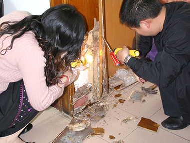 市民李先生问广州白蚁防治站工作人员,家里的木门框发现了白蚁,可是短时间没有装修的准备,还有一个缘由是家里有孕妇,有什么办法既不影响孕妇也不毁坏原有的装修的状况下能够将白蚁全部杀死吗?